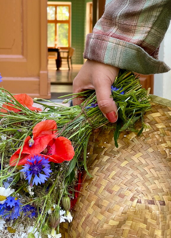 Unsere große Ferienwohnung Wiesentraum erinnert an eine Altbauwohnung. Polierte Holzböden, restaurierte Möbelstücke und modernes Interieur. Die Wohnung bietet sehr viel Komfort. Alle Zimmer gehen vom Flur ab. Die Highlights dieser Wohnung sind der Blick in den Garten und über die Felder, freistehende Badewannen, ein Kamin, ein großer Essbereich.
